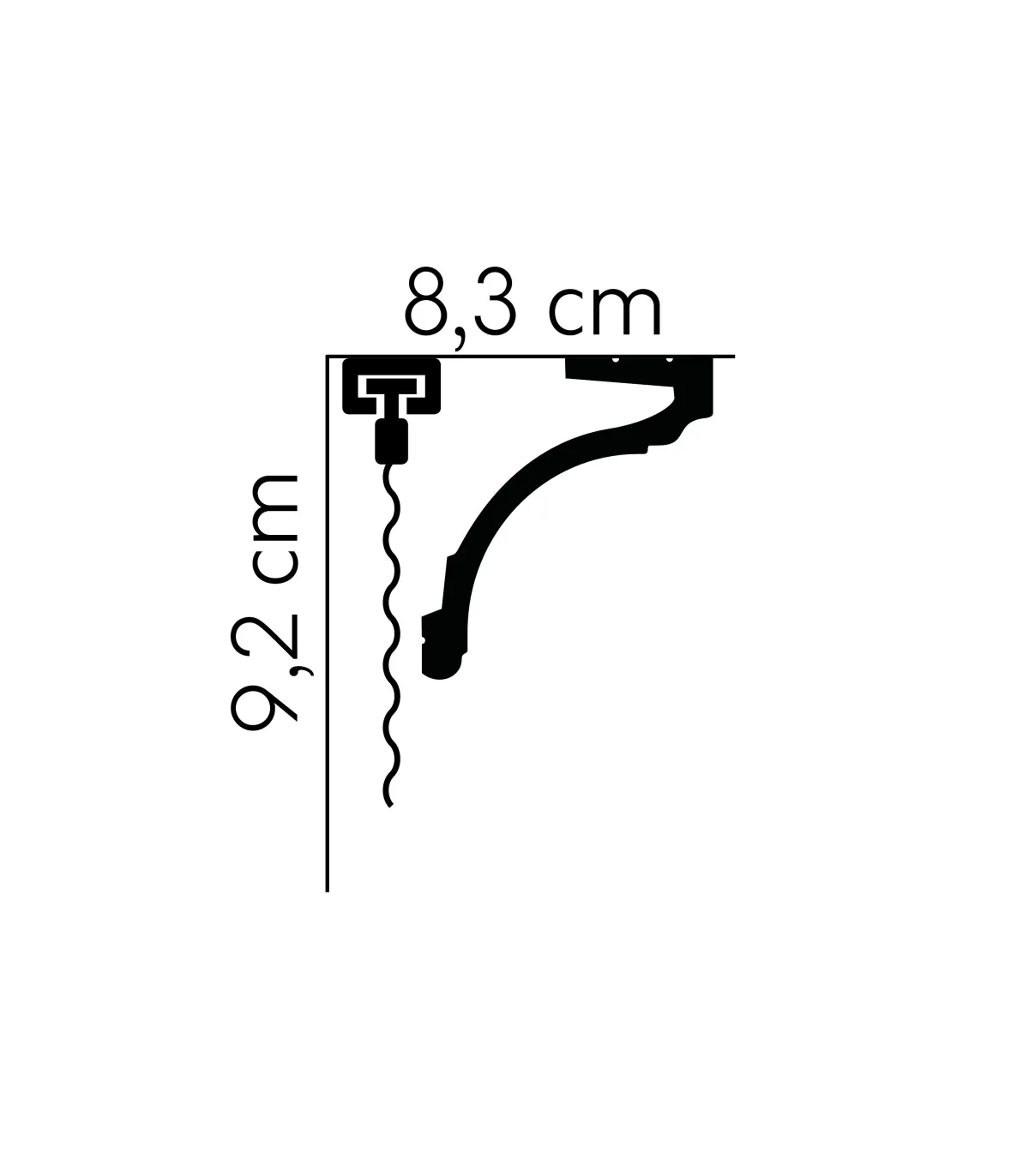 Die speziell profilierte Form ermöglicht die Installation von LED-Beleuchtung auf der Rückseite der Leiste. Falls Sie LED-Beleuchtung an der Leiste anbringen möchten - empfehlen wir als Unterlage vor dem Kleben der Beleuchtung ALU-Band zu verwenden, das eine thermische Isolierung und bessere Lichtreflexion gewährleistet.