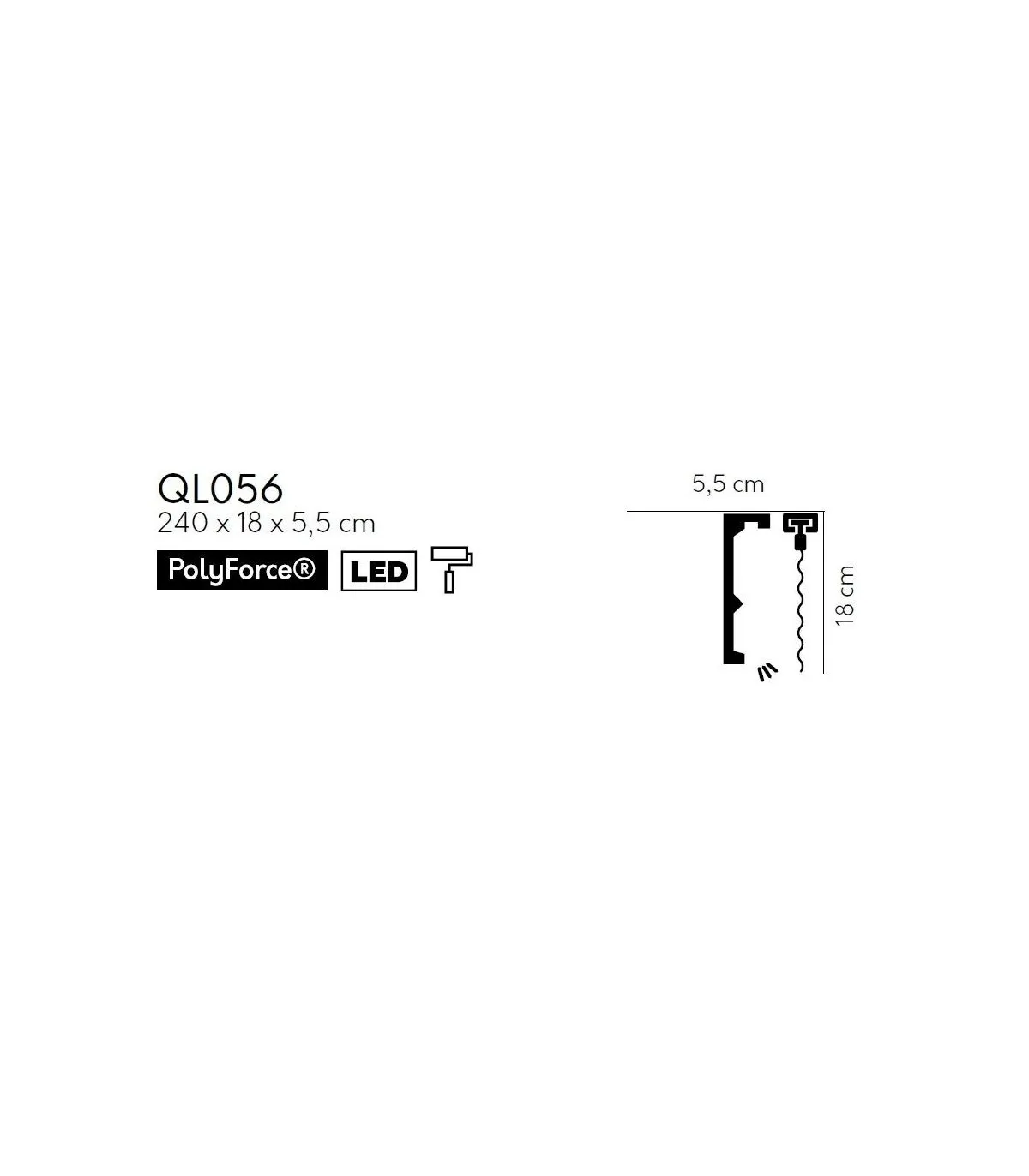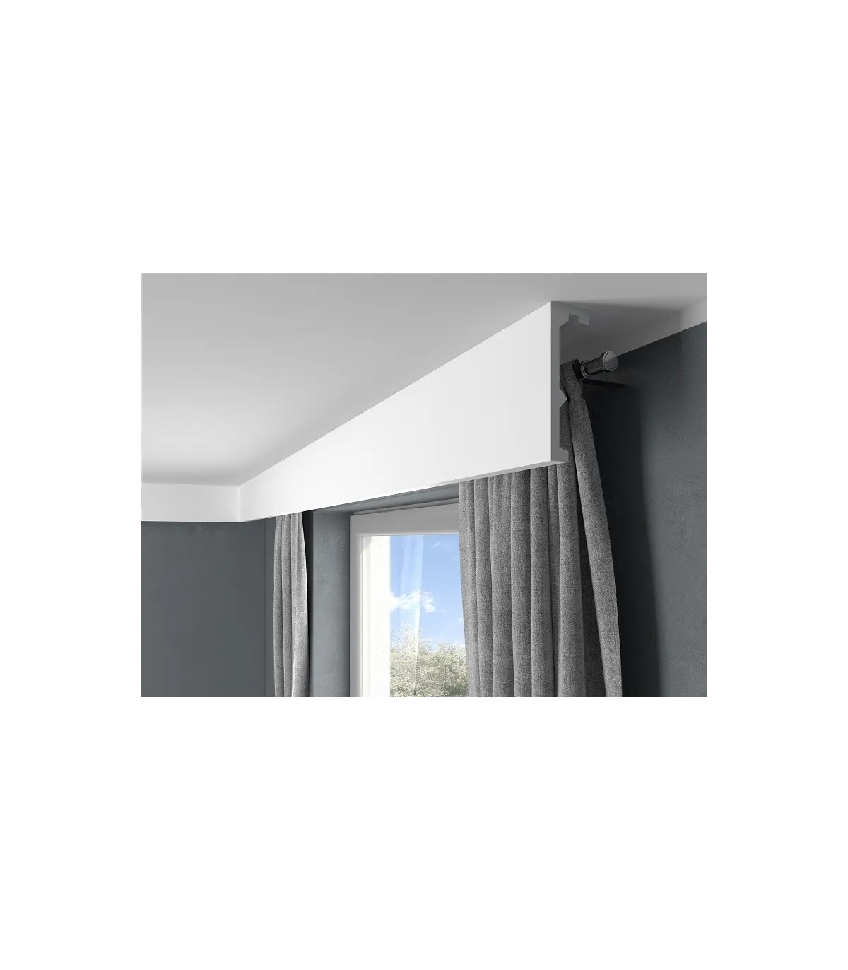 Die Gardinenstangen-Abdeckleiste QL056 ist zur Abdeckung von Gardinenstangen oder Schienen bestimmt. Das Produkt erhöht deutlich die ästhetischen Eigenschaften des Fensterbereichs und verbirgt unerwünschte Elemente.