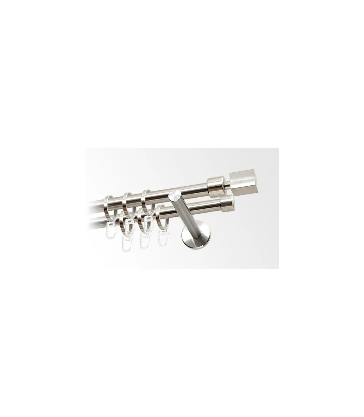 Gardinenstange doppelt Ø 16mm Edelstahl gebürstet Endstück Kvadrat.