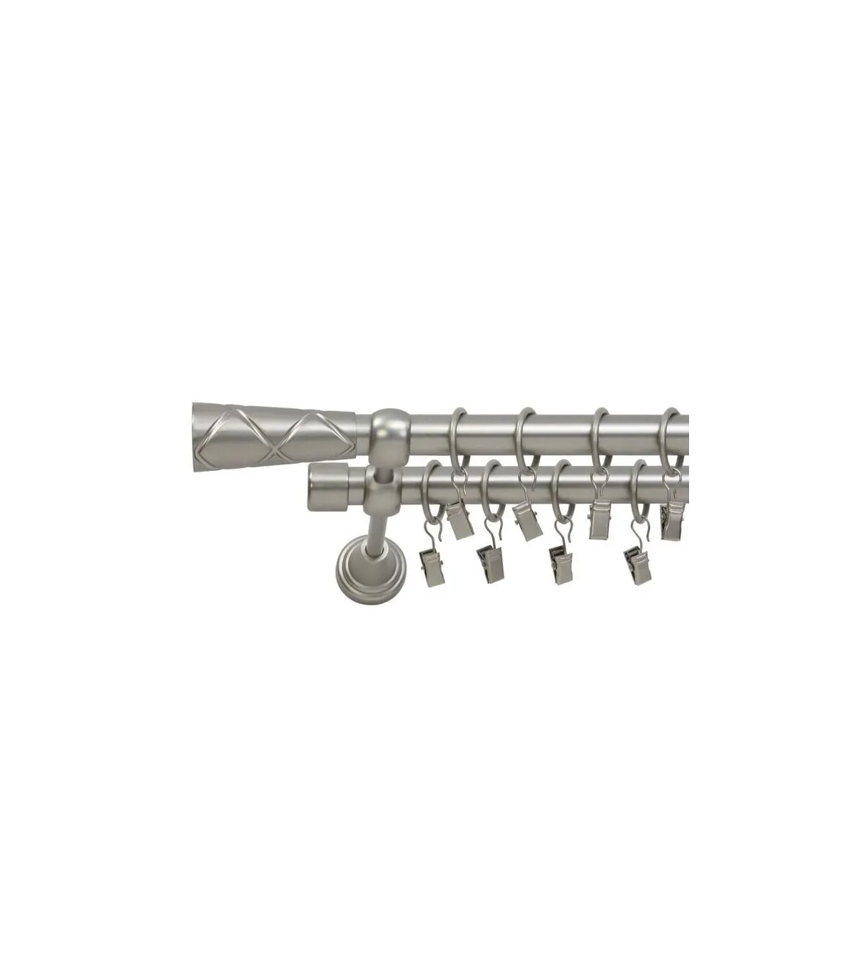 Gardinenstange doppelt Ø 19mm Satin Nickel Endstück Trapezium.