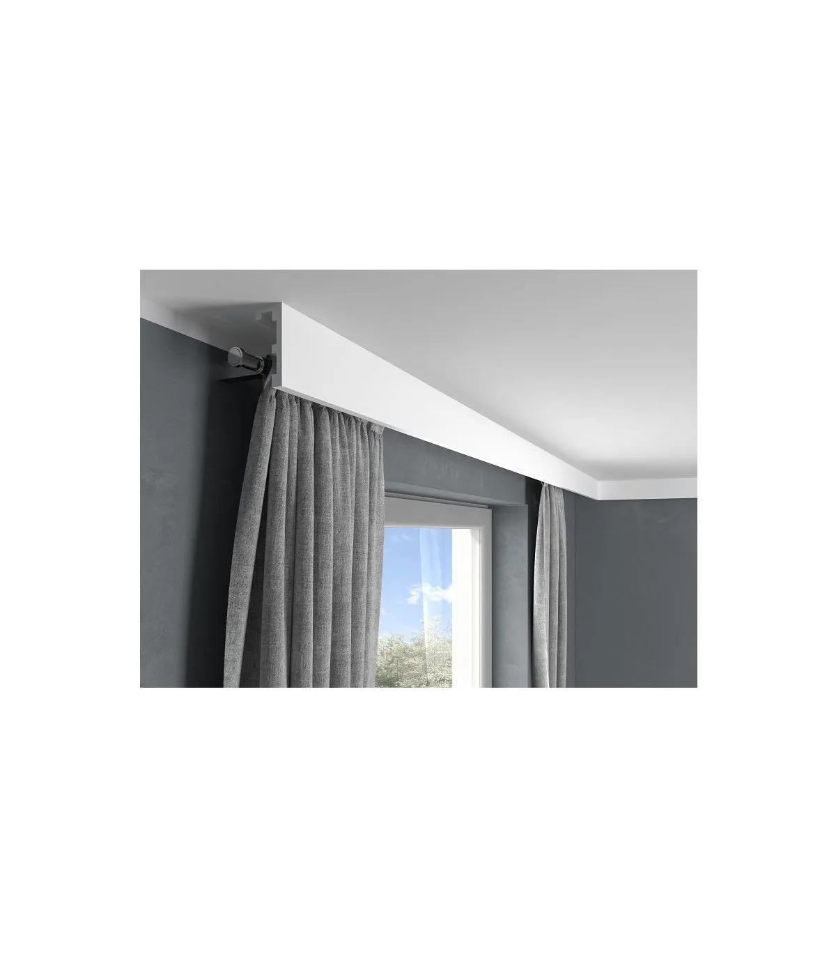 Lišta v modernom dizajne určená špeciálne na zakrytie garniže. Predstavuje elegantnú alternatívu k zakrytiu často nevzhľadných garniž pomocou sadrokartónových alebo drevených dosiek. Je ľahká a umožňuje umiestnenie dnes toľko obľúbeného LED osvetlenia.