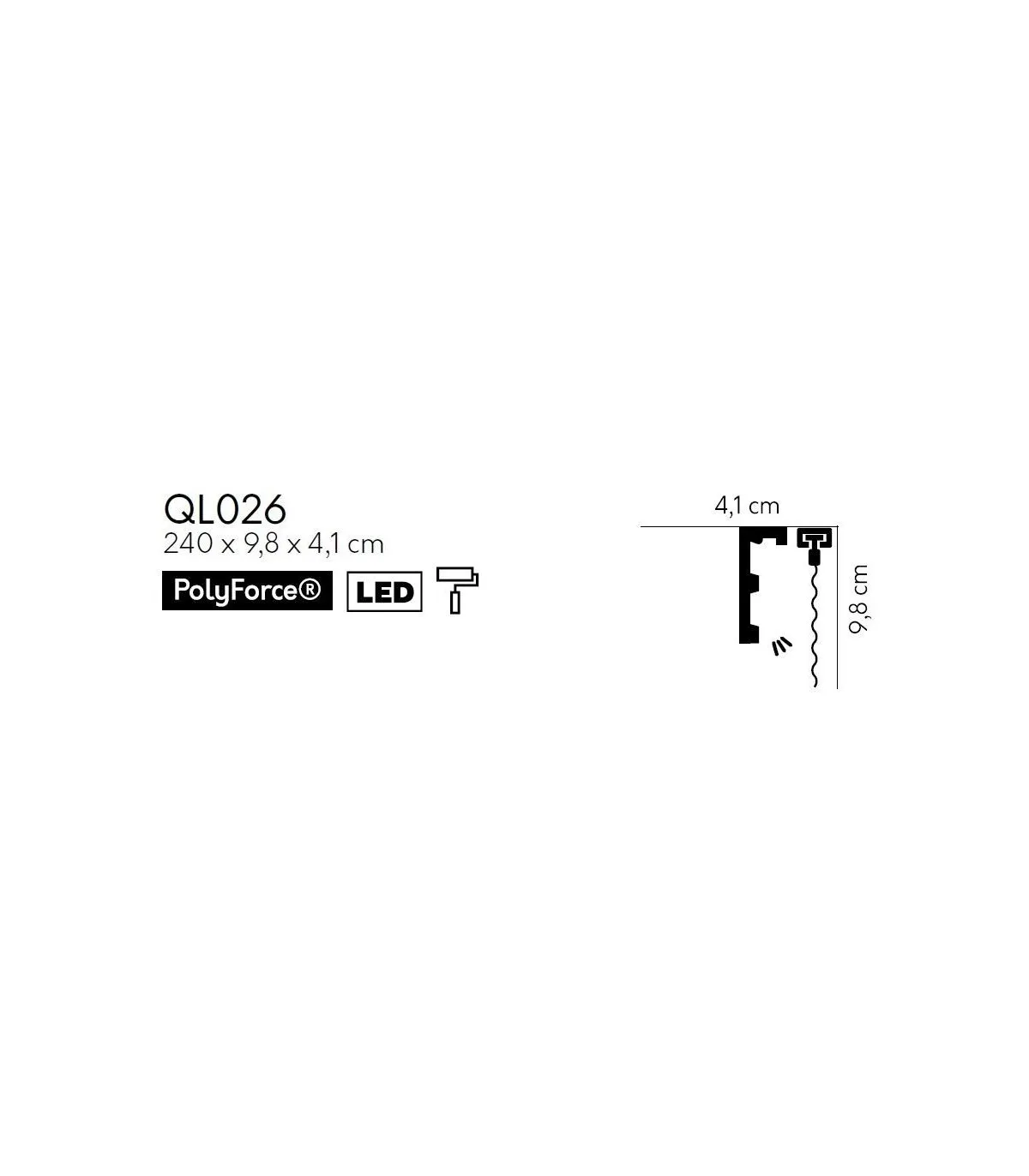Na lištu QL026 je možné prilepiť akékoľvek stropné lišty ktoré nie sú vyššie ako 9,8 cm