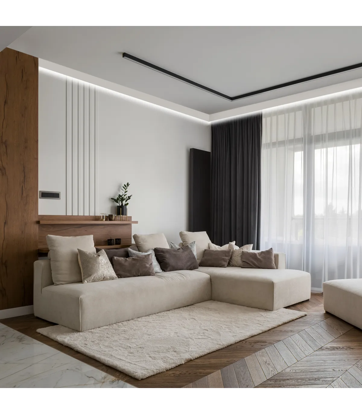 Lišta v modernom dizajne určená špeciálne na zakrytie garniže. Predstavuje elegantnú alternatívu k zakrytiu často nevzhľadných garniž pomocou sadrokartónových alebo drevených dosiek. Je ľahká a umožňuje umiestnenie dnes toľko obľúbeného LED osvetlenia.