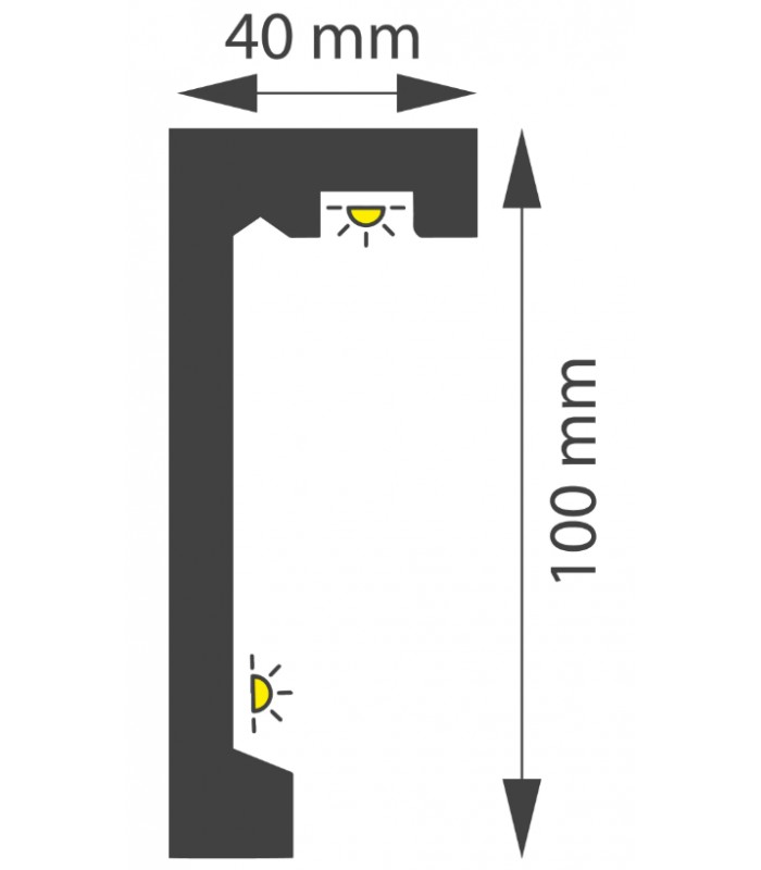 Lišta v modernom dizajne určená špeciálne na zakrytie garniže. Predstavuje elegantnú alternatívu k zakrytiu často nevzhľadných garniž pomocou sadrokartónových alebo drevených dosiek. Je ľahká a umožňuje umiestnenie dnes toľko obľúbeného LED osvetlenia.